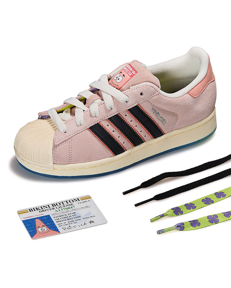 Divertido, confortável e cheio de personalidade. O Tênis Adidas Superstar Patrick Unissex Rosa traz a essência do clássico Adidas Superstar em uma versão especial que encanta os pequenos fãs do universo do Patrick Star.